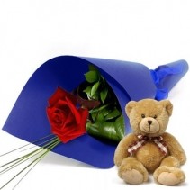 Even when you are far from your loved ones and friends, you can still make the experience real for them by sending them a gift of a single rose accompanied by a cuddly teddy bear. This fancily wrapped single rose is expressive enough to relay your thoughts and the teddy bear, a joyful addition for a sunnier day.