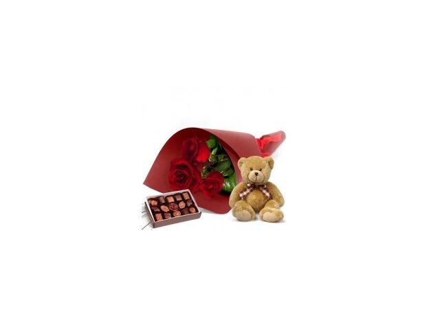 Have a mini-celebration with this fantastic present which you can give as a month anniversary gift to your love of your life. Yes, that’s correct, anniversaries need not to be limited as an annual event, and you can celebrate every month with such an amazing 3-piece gift like 3 Roses + Teddy Bear + Chocolates!