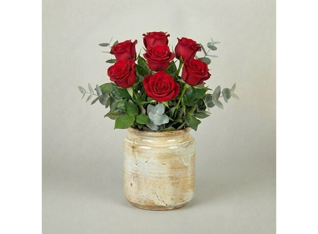 A dozen red roses is a statement that most people associate with grand romantic gestures. A single red rose is a symbol but it's hard to arrange in a pot without looking sparse. Six is the number that works for actual life. It fills a terracotta pot without crowding. It says something without shouting. It costs $35 instead of $70 or more for twelve, which means you can send it on a Tuesday for no reason at all and not feel like you've overcommitted.