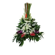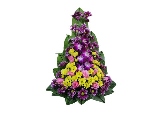 Picture the scene: Timeless – Radiant – Unforgettable! Lily’s Florist Bali can think of a thousand ways to describe our classic arrangement of Purple Daisy Chrysanthemums, Purple Singapore Orchids and deliriously rich Pink Roses; all assembled against a background of lush greenery.