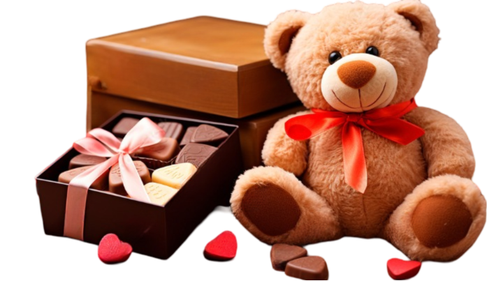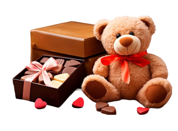 This delightful teddy and chocolate hamper is the quintessence of sweet affection. Perfect for moments that call for a heartfelt gesture, the hamper features a charming teddy bear adorned with a vibrant red bow, symbolising warmth and companionship. Accompanying the plush companion is a luxurious box of assorted chocolates, each piece promising a symphony of rich and indulgent flavors that are sure to tantalise the taste buds. The presentation is impeccable, with the chocolates elegantly arrayed in a sleek box, tied with a satin ribbon that adds a touch of sophistication. Scattered around are dainty red hearts, underscoring the hamper's theme of love and thoughtfulness. This hamper makes for an ideal gift, encapsulating both innocence and indulgence, and is perfect for occasions such as Valentine’s Day, anniversaries, or as a sweet surprise to show someone you care.